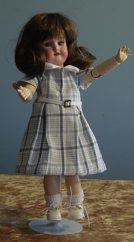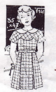 Model: ? Maman: Carolyn Englert Seamstress: Carolyn Englert Photo belongs to Carolyn Englert Note: The bodice was sewed directly to the skirt-I think its the plaid that doesn't show the scallops as clearly. |
