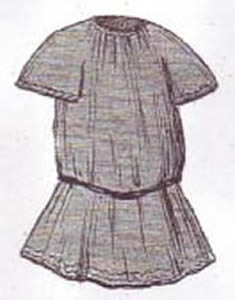 Model: ? Note: Dress in teal blue silk trimmed with embroidery and ribbon. |
