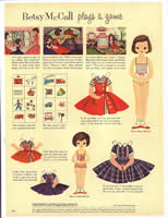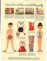 * August - Betsy McCall Plays a Game (with brown-haired Linda and "co-ed" dress later worn by 8" Betsy McCall doll)
