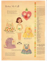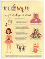 * January - Betsy McCall (Features New Years Poem and patterns to make clothing for Betsy and her 8 Betsy McCall doll. Shows five tiny Betsy dolls. Pattern 2300 for both 8 and 14 sizes)